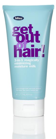 Торговая марка Bliss разработала новое увлажняющее молочко, которое минимизирует рост волос, помогает предотвращать появление вросших волосков и увлажняет кожу. Увлажняющее молочко Get out of hair подходит для всех областей тела, которые регулярно подвергаются бритью и удалению волос воском, таких как ноги и зона бикини. Оно содержит смесь ингредиентов, действие которых нацелено на волосяные луковицы, что позволяет минимизировать сокращение повторного роста волос после их удаления.