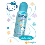 После успешного выпуска в прошлом году лимитированного издания дезодоранта Rexona girl с изображением всем известного котёнка, торговая марка снова выпускает на рынок дезодорант, созданный для молодых девушек, флакон которого украшен элементами бренда Hello Kitty.