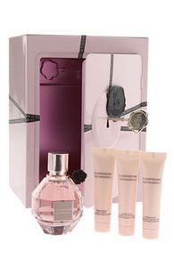 В набор входит флакончик объемом 50 мл аромата Flowerbomb, а также бутылочки той же емкости с молочком для тела и пеной для ванны с аналогичной отдушкой. Коробочка декорирована сердечком. Стоимость набора составит около 90 евро.