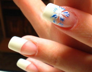 Если же традиционный французский маникюр кажется Вам слишком простым и неинтересным, можете заменить бледные оттенки яркими, например, красным и черным, ярко-синим и нежно-голубым, в общем, здесь все зависит от Вашей фантазии.
