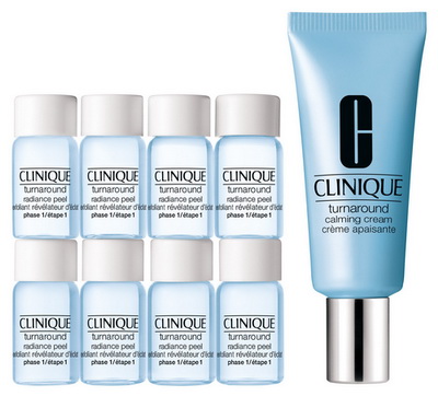 Clinique представляет новую систему Turnaround Radiance Peel Once-A-Week System, которая вернет вашей коже свежесть и сияние. Эта система, очередной продукт популярной линии Turnaround, представляет собой двухфазовую специальную процедуру отшелушивания, которая обеспечивает 30% результата профессионального гликолевого пилинга, являясь при этом практичным и удобным средством для домашнего использования. Фаза 1 – Radiance Peel: устранение омертвевших клеток с поверхности кожи для моментального придания ей свежего, сияющего вида. Фаза 2 – Calming Cream: крем, который успокаивает кожу и снимает раздражение после первой процедуры. Эта система для еженедельного применения обеспечивает дополнительное отшелушивание, в котором нуждается тусклая, усталая кожа.