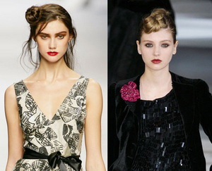 В прическах они ожидают возвращения пучков балерин. Прилизанные или с несколькими выступающими прядями, эта строгая укладка будет особенно популярной весной. А если Вы хотите что-то более игривое, завейте волосы. Волнистые и курчавые локоны будут писком моды.