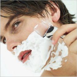 Сайт также советует перед бритьем смачивать волосы, так как волоски представляют собой быстро впитывающую влагу губку, а влажными их срезать легче. Однако не нужно бриться после душа, так как слишком мокрые волосы плохо поддаются бритью