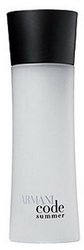 2) Giorgio Armani: «Armani Code Summer». Женская версия Armani Code Summer начинается сочными ароматами грушевого шербета, горького апельсина, нероли, которые сменяются «сердечными» аккордами апельсинового цвета, цикламена, имбиря, жасмина самбак и «базовыми» нотами драгоценных светлых пород древесины, ванили, мускуса. Мужской аромат Armani Code Summer pour Homme — это смесь верхних нот грейпфрута, бергамота, зеленого нероли, моря, «сердечных» оттенков эстрагона, цветков оливы, розы, кедра и «базовых» аккордов дерева гаяк, мускуса и амбры. Обе композиции поступили на прилавки в концентрации туалетной воды во флаконах объемом 75 мл.