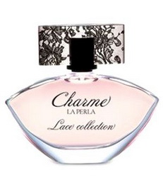 21) La Perla: «Charme Lace Collection». Новый женский цветочный аромат для чарующих женщин. В композиции чувствуются начальные оттенки мандарина, цветков яблони, дыни, бергамота, которые перетекают в «сердце» из аккордов жасмина, розы, цикламена, лилии и «базу» из ноток пачули, амбры, ветивера, мускуса, ванили, бобов тонка. Аромат Charme Lace Collection вышел в концентрации туалетной воды во флаконах объемом 50 мл.