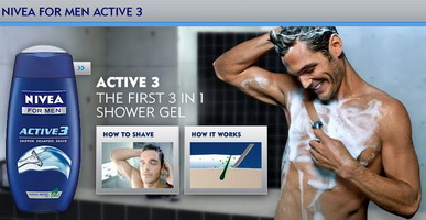 Немецкая компания Beiersdorf выпустила универсальный продукт Nivea Active 3, созданный для современных мужчин, располагающих небольшим бюджетом.