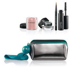 Элегантная лимитированная косметичка Naughty Noir Eye Bag, любезно предоставленная компанией MAC, включает ряд косметических бестселлеров, среди которых бледно-персиковый блеск Pigment in Shimertime, подходящий для глаз, щёк и губ, подводка Fluidline в оттенке Blacktrack, кисточка для подводки и тушь Zoom Lash в оттенке Zoomblack.