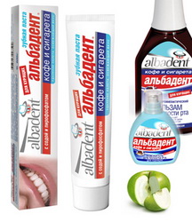 Новая зубная паста Альбадент® Кофе и сигарета с содой и пирофосфатом — одно из них. Паста прекрасно дополнит действие, уже имеющихся в линейке лечебно-профилактических продуктов, бальзама для полости рта «Альбадент® кофе и сигарета» и освежителя дыхания с одноимённым названием. Эффективное «трио» избавит курильщиков от специфического никотинового налёта и неприятного запаха изо рта. Новая зубная паста обладает оптимальной текучестью и вспениваемостью благодаря специально подобранной комбинации загустителей, содержит богатую палитру активных компонентов.
