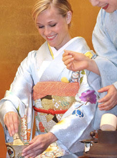 Являясь мировым представителем компании Avon, Риз Уизерспун на этой неделе побывала в Токио, где облачилась в традиционное кимоно и провела часть японской чайной церемонии. После церемонии, актриса фильма Блондинка в законе встретилась с женщинами, победившими рак груди, и раздала всем пришедшим на встречу традиционный браслет компании Avon, Women's Empowerment bracelet.