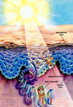 влияние на кожу. Солнечный свет вызывает освобождение энзимов в верхних слоях кожи, которые затем перемещаются в нижние слои и вызывают повреждения».