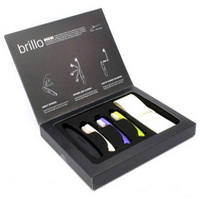Портативные зубные щетки японского производства Brillo 85030 можно брать с собой в поездку. Они упакованы в стильную черную коробку. В ней 4 выемки: для 3 цветных и одной складной щетки. Также в комплект от Metaphys входит кожаный чехол.