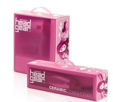 Фен и плойка упакованы в привлекательные ярко-розовые коробки с иллюстрациями девушек.