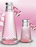 Двусмысленная упаковка продукта ? наглядный пример “заимствования” дизайна из смежных потребительских категорий с целью ориентации на конкретную целевую аудиторию. Розовый цвет, традиционно означающий женственность, коническая форма и рельефная поверность бутылки ориентированы на романтических утонченных особ, любительниц сладких ароматов.