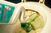 Почему для чистки унитазов выпускаются отдельные средства – допустим, «Истра–Люкс» от «ЗАО Мезопласт» или «Domax» от «Domal GmbH»? Дело в том, что в унитазе образуются не просто загрязнения, а очень сложные по химическому составу отложения. Тут вам и органические кислоты, и мочевой камень, и соли разной степени жесткости, и, собственно, ржавчина. Средство, которое направлено против одного типа загрязнений, не справится с ними всеми. А это означает, что средство для очистки унитаза должно иметь уникальную активную формулу. И что еще?.. Правильно: таким средством ни в коем случае нельзя пользоваться без резиновых перчаток.