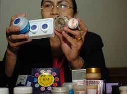 Глава BPOM Хушния Рубиана Тамрин Акиб (Husniah Rubiana Thamrin Akib) сообщает, что в косметике обнаружены ртуть, гидрохинон, ретиноевая кислота, красные пигменты K.3 (CL15585) и K.10 (Rhodamine B), фиолетовый пигмент K.1 (CL 12075).