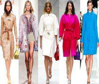 В моде блестящие фактуры, например, жаккардовая блестящая ткань. Для пальто актуальны бежевый, белый, ярко-красный, оранжевый и желтый цвета. Для разных тонов используют узоры рептилий и актуальные цвета и оттенки для определенных стилей. Весьма популярна для пальто полоска, клетка, цветы.