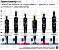 Существует ли такая формула для людей разных эпох? Американские ученые провели эксперимент. Они предложили участникам рисунки 40 разных частей тела в трех видах — формы современных людей, первобытнообщинных и промежуточные. Результаты показали, что представители разных народностей со всех континентов земного шара более высокую оценку присудили формам современного человека. По итогам других подобных экспериментов тоже было выявлено, что жители разных стран долго любовались фотографиями красивых людей независимо от их принадлежности к какой-либо нации. Выходит, что все-таки какие-то стандарты красоты имеют место для всех народов и временных эпох. Большинство исследователей полны уверенности, что здесь играет роль эволюционная целесообразность. То есть привлекают внимание те, кто имеет свои преимущества, которые играют на руку природе. Это здоровые женщины способные к репродукции, имеющие широкие бедра и большой объем груди. Девердра Синх, ученый из Техаса, выявила: особенно красивыми считаются женские фигуры, соотношение объема талии и бедер которых равно от 0.70 до 0.75. А весь секрет состоит в том, что данное соотношение 0.70-0.75 отражает то, как распределен по телу женщины жир и насколько широки ее бедра. Как раз эти цифры указывают на наиболее подходящую фигуру для рождения детей.