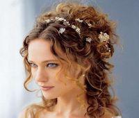 Фату лучше подобрать легкую и воздушную и закрепить ее в нижней части прически. Она придаст вам нежность и подчеркнет вашу невинность. Прическа будет смотреться эффектно, если, накрутив на бигуди, не расчесывать их потом, а лишь разделить пряди легкими движениями и зафиксировать лаком. Потом собираете все это в высокую прическу, а ниспадающие локоны чередуете с цветами. Образ должен получиться нежным и очаровательным. А хлопоты, связанные с торжеством, запомнятся на всю жизнь.