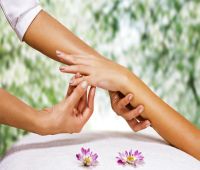 Гидротерапия. Руки погружают в ванночку с тёплой водой, состав которой