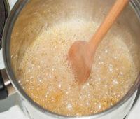 Все компоненты кладут в кастрюлю, ставят на огонь и постоянно перемешивают массу до того, как появится пена и пузырьки. До наступления этого момента от нее не отходят ни на шаг.