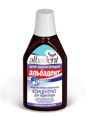 Концентрат содержит биоантиоксидантный комплекс Неовитин® (противопародонтозный эффект подтверждён патентом РФ № 2095052) который препятствует размножению патогенных микробов, снимает воспаление, уменьшает кровоточивость и отечность десен, биофлаволипидный комплекс Активитин - двухфазный экстракт шалфея, ромашки, календулы и зверобоя, успокаивающий слизистую и ксилит - противокариесную добавку. Новое гигиеническое средство может применяться и как классический ополаскиватель, без ирригатора. Безопасность подтверждена клиническими испытаниями в Стоматологическом испытательном центре «ЦИС» ГПЦ «ПАКС» при СПбГМУ им. акад.И.П.Павлова. По мнению производителей Альбадент® КОНЦЕНТРАТ для ирригатора с Неовитином® и Активитином и судя по небывалому для летнего периода спросу на лечебно-профилактические средства для ухода за полостью рта, выпускаемые компанией, новое гигиеническое средство быстро завоюет популярность у россиян.