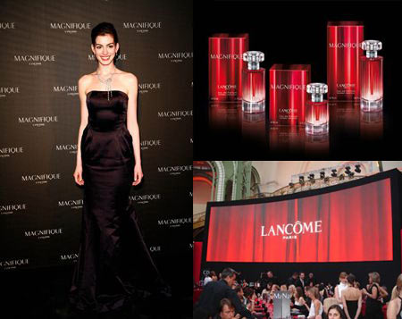 Анна Хэтэуэй известна по фильмам «Дневники принцессы», «Дьявол носит Прада», «Горбатая гора». В данный момент ее изображения можно увидеть в рекламе нового аромата Lancome «Magnifique».