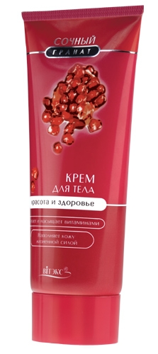 Богатый витаминами крем для тела интенсивно ухаживает за кожей: питает и насыщает витаминами, наполняет жизненной силой, придавая удивительную нежность и легкий приятный аромат. С кремом «Сочный гранат» Ваша кожа удивительно гладкая и нежная.