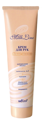 Активные вещества: •Натуральное молоко •Витаминный комплекс (А+Е) Легкий, быстро впитываемый, крем на основе молока насыщен полезными молочными протеинами, витаминами и липидами. Он смягчает и питает кожу рук, обеспечивает ей длительное увлажнение. От применения этого крема после каждого мытья рук кожа разглаживается, становится мягкой и нежной.