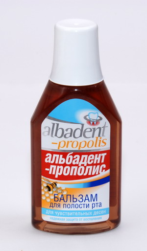 Бальзам противовоспалительный для полости рта «Альбадент— прополис» для чувствительных дёсен для профилактики пародонтита дезинфицирует и приятно освежает полость рта.
