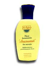 «Масло «Анальгетик» - содержит пихтовое, камфорное и мятное масла. Применяется в качестве обезболивающего и противовосполитель-ного средства при остеохондрозе, миалгиях, невралгиях, артритах, ради-кулите, суставных болях активизирует микроциркуляцию крови в конеч-ностях. Масло пихты обладает обезболивающим и противовоспалительным свойствами, снимает стресс и хроническую усталость. Масло эвкалипта имеет выраженное антибактерицидное, обезболивающее и противовос-палительное действие. Масло камфоры улучшает микроциркуляцию крови. Масло мяты устраняет нервное перенапряжение, оптимизирует мозговое кровообращение.