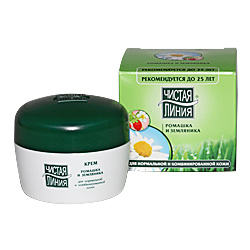 Крем Чистая линия ромашка и земляника обеспечивает оптимальный уход за нормальной и комбинированной кожей в возрасте до 25 лет: