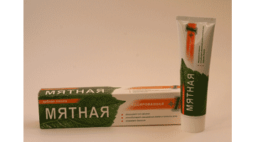 Зубная паста "Мятная с йодом" защищает зубы от кариеса, способствует заживлению ранок в полости рта, освежает дыхание.