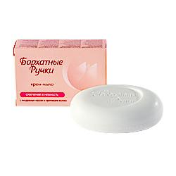 Крем-мыло Бархатные ручки " Смягчение и нежность" мягко очищает, содержит крем с питательными и смягчающими компонентами.