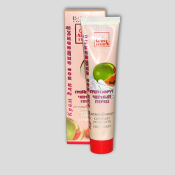 Экстракты грейпфрута и черного перца обуславливают двойное действие крема дл ног. Обладая бактрицидными свойствами, грейпфрут прекрасно тонизирует кожу, предотвращает появление неприятного запаха. Черный перец стимулирует кровообращение в коже ступней, поэтому крем идеально подойдет для тех, кто страдает от охлаждения и замерзания конечностей вследствие низкого давления крови. Крем помогает снять усталость после физических нагрузок, эффективен при профилактике простудных заболеваний.