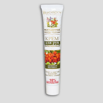 Благодаря уникальным свойствам целебной вытяжки облепихи, которая содержит комплекс витаминов А, Е, С, крем способствует заживлению микротрещин и ранок, укрепляет и защищает кожу от вредного воздействия окружающей среды.