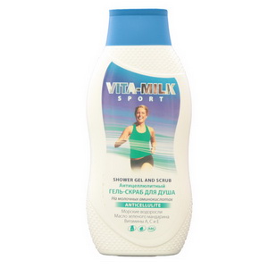 Благодаря морским водорослям и маслу зеленого мандарина гель-скраб для душа Vita-Milk Sport Antkellulite эффективно улучшает кровообращение и способствует активному сжиганию подкожного жира. Молочные аминокислоты восстанавливают структуру кожи, делая ее гладкой, прочной и эластичной. Витамин А повышает защитные функции, витамин С способствует глубокому увлажнению, а витамин Е стимулирует процессы обновления клеток. Vita-Milk Sport Anticellulite надолго избавит Вас от признаков целлюлита и сделает путь к идеальному телу еще более простым и приятным!