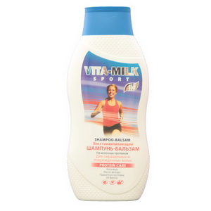 Как вернуть поврежденным волосам силу и блеск? Воспользуйтесь шампунем-бальзамом Vita-Milk Sport Protein Care! Шампунь-бальзам Vita-Milk Sport Protein Care бережно очищает волосы, делая их мягкими и послушными. Пшеничные протеины эффективно восстанавливают структуру волос, а молочные протеины укрепляют корни и интенсивно питают. Экстракт алое вера глубоко увлажняет волосы и восстанавливает гидробаланс, масло авокадо насыщает волосы витаминами, придавая им прочность эластичность. UV-фильтр, входящий в состав шампуня, надежно защитит волосы от воздействия солнечных лучей