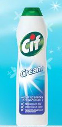 Cif- первый абразивный крем с уникальной формулой, содержащей мельчайшие микрогранулы, окруженные пузырьками, что позволяет эффективно чистить даже сильнозагрязненные поверхности без царапин! Именно это, на первый взгляд парадоксальное сочетание мощности и нежности, стало залогом такой популярности крема во всем мире.
