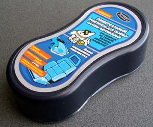 Новый продукт представляет собой компактную губку, пропитанную специальным составом, глубоко проникающим и очищающим поверхности обивки автомобиля из ткани, велюра, а также автомобильные коврики.