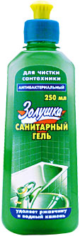 Универсальное гелеобразное средство для чистки ванн, кафеля, хромированных, пластиковых поверхностей, кранов, сливов и т.д. Благодаря густой консистенции, в отличие от жидких средств типа «Санитарного», расходуется экономнее, может оставаться на наклонных поверхностях, стекая медленно и продолжая интенсивно чистить.