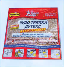 Двухсторонняя. Одна сторона чистит, другая - впитывает влагу и протирает. Для кухни, стеклокерамических плит, кафеля, мрамора, ванных комнат, полов, мрамора.