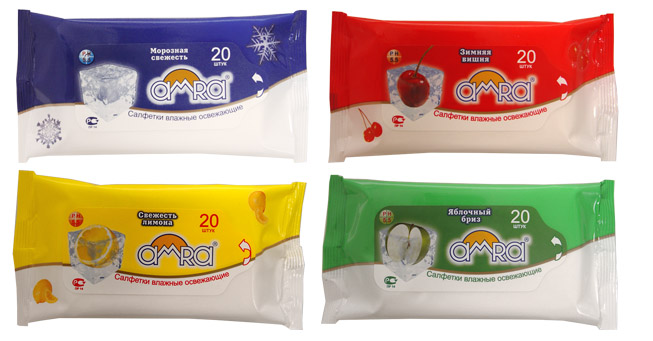 Влажные освежающие салфетки «Аmra» обеспечивают здоровую чистоту лица и рук в течение всего дня. Это идеальный уход за кожей, благодаря своей мягкости и содержанию лосьона, в который входит Аллантоин. Салфетки быстро и эффективно освежают и оживляют кожу. Очень практичная и разнообразная упаковка освежающих салфеток позволяет брать их с собой повсюду: на работу, на дачу, на пикник, положив в карман, сумку, бардачок автомобиля. А различные замечательные запахи пробуждают в нашем сердце весну, и пользоваться ими – одно удовольствие.