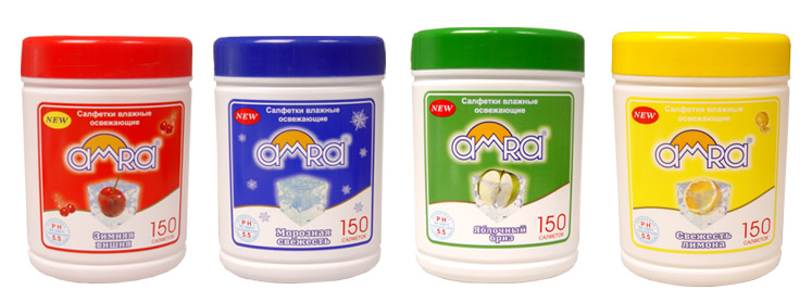 Влажные освежающие салфетки «Аmra» обеспечивают здоровую чистоту лица и рук в течение всего дня. Это идеальный уход за кожей, благодаря своей мягкости и содержанию лосьона, в который входит Аллантоин.