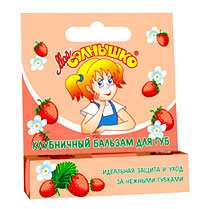 - Вкусный аромат свежей клубники и приятный ягодный цвет наверняка заинтересует маленькую потребительницу. А мама оценит полезные свойства бальзама