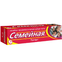 Лечебно-профилактическая зубная паста 'Семейная. Тотал' обеспечивает эффективный комплексный уход за зубами и деснами взрослых и детей...