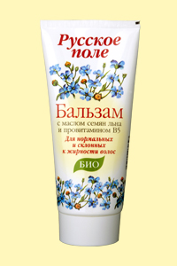 Бальзам "Русское поле" специально разработан для ухода за нормальными и склонными к жирности волосами. Входящее в его состав масло семян льна, насыщенное глицеридами линоленовой и линолевой кислот, витамином А и другими полезными соединениями, благотворно влияет на структуру волос и кожу головы.