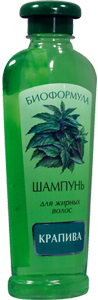 Шампунь с натуральным экстрактом крапивы предназначен специально для волос жирного типа, он восстанавливает их структуру, питает, регулирует работу сальных желез и нормализует водообмен кожи головы