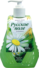 Ромашка Жидкое мыло «Русское поле» с экстрактом ромашки содержит эфирное масло, флавоноиды, кумарины, холин, каротин, аскорбиновую кислоту, глиглицериды жирных кислот и микроэлементы.