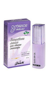 Верхний слой маникюра, наиболее подверженный деформации, смазыванию, налипанию пылинок и других взвесей, теперь защищен масляной пленкой, оберегающей лак от «пыльных бурь» и деформации.
