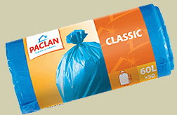 Серия голубых мешков для мусорных ведер. Мешки выпускаются трех размеров: 35л, 80л, 120л.